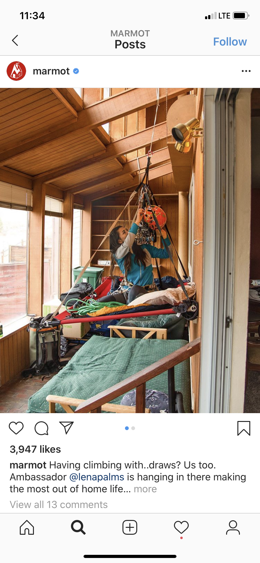 In early 2020, Marmot had to tell their customers something that went against everything their brand stood for - stay inside. To help ease the pain, we developed a reassuring logo mod that was more in the moment, and a social challenge #AdventureInPlace that kept the brand relevant and followers busy.